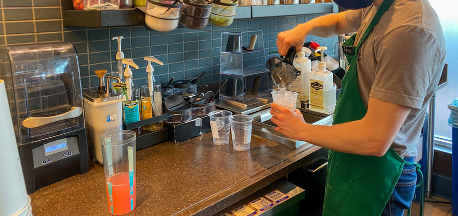 Pictured here is what we call our "Cold Bar Station". This is where many of our iced drinks such as frappuccinos, teas, ice coffee, and cold brew.